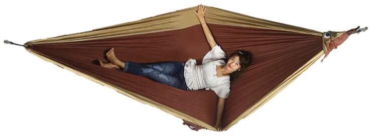 Ticket to the Moon Double Függőágy: Könnyű, erős és kényelmes ✈️ Ez az eredeti ejtőernyőselyemből készült függőágy tökéletes választás túrázáshoz, kempingezéshez, vagy akár otthoni használatra is. Ultrakönnyű, mégis rendkívül erős (200 kg teherbírású!), így ideális választás mindazoknak, akik értékelik a könnyű csomagolhatóságot és a kényelmet. Főbb jellemzők:Extrém könnyű: Mindössze 600 gramm! Ideális túrázáshoz és utazáshoz. Erős és tartós: 100% ejtőernyőselyemből készült, 5 év garanciával a szakadás ellen. Kényelmes: Bőrbarát, lélegző anyagból készült, nagy (320x200 cm) fekvőfelülettel. Könnyű összeszerelés: Nincsenek bonyolult trükkök, gyorsan ki- és becsomagolható. Rozsdamentes kampók: Biztonságos és tartós rögzítés. Csokoládébarna szín: Stílusos és időtálló. Műszaki adatok:Tulajdonság ÉrtékFekvőfelület 320 x 200 cmMinimális függő táv. 2,8 mTeherbírás 200 kgSúly 600 gAnyag 100% ejtőernyőselyemÉlvezze a szabadban, vagy otthon a pihenést ebben a kényelmes és strapabíró függőágyban!